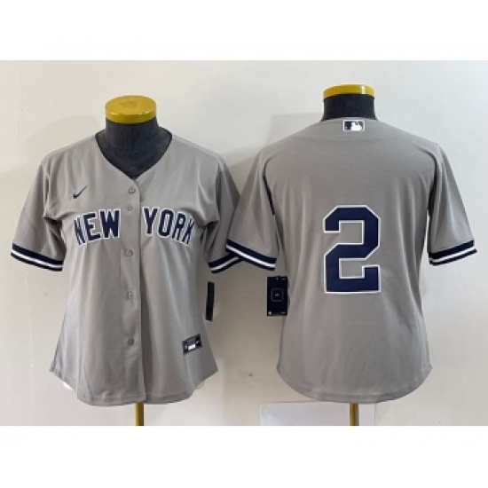 Women's Nike New York Yankees #2 Derek Jeter Grey No Name Stitched Cool Base Jersey