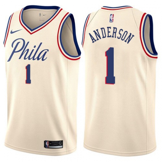 Home>NBA>Philadelphia 76ers>Justin Anderson>Women's Nike Philadelphia 76ers #1 Justin Anderson Swingman Cream NBA Jersey - City Edition