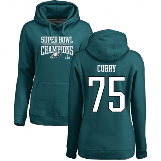 Women's Nike Philadelphia Eagles #75 Vinny Curry Green Super Bowl LII Champions Pullover Hoodie