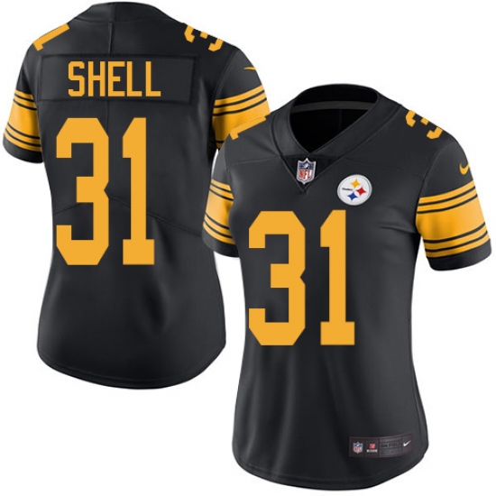 Home>NFL>Pittsburgh Steelers>Donnie Shell>Women's Nike Pittsburgh Steelers #31 Donnie Shell Limited Black Rush Vapor Untouchable NFL Jersey