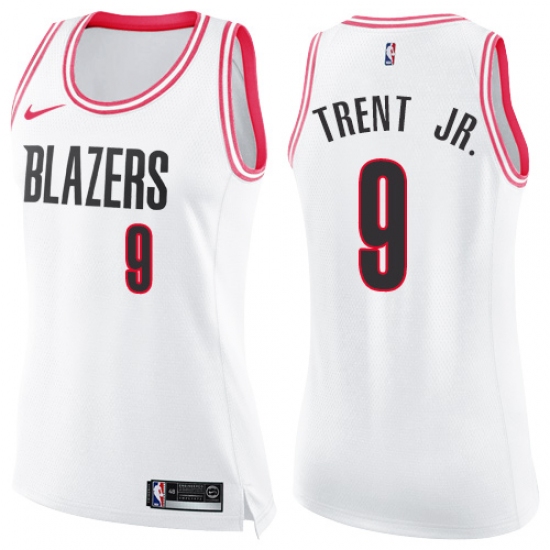 Women's Nike Portland Trail Blazers #9 Gary Trent Jr. Swingman White Pink Fashion NBA Jersey
