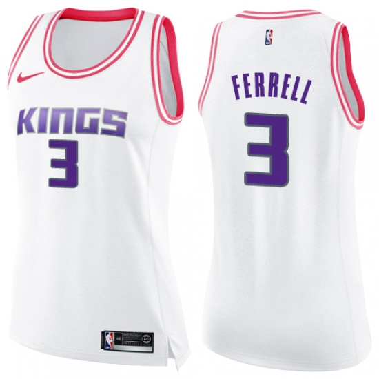 >Women's Nike Sacramento Kings #3 Yogi Ferrell Swingman White Pink Fashion NBA Jersey