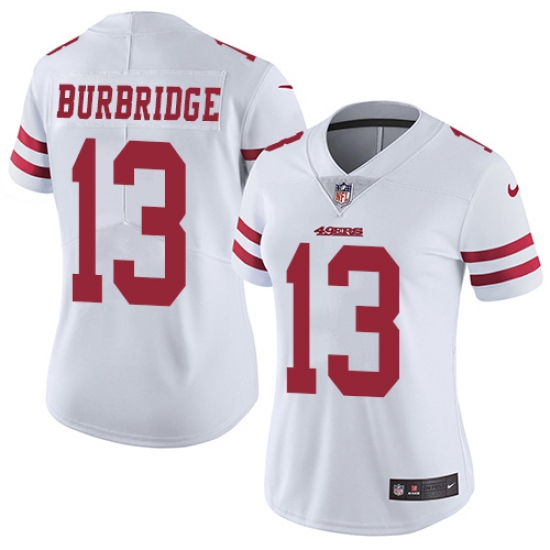 Women's Nike San Francisco 49ers #13 Aaron Burbridge White Vapor Untouchable Limited Player NFL Jersey