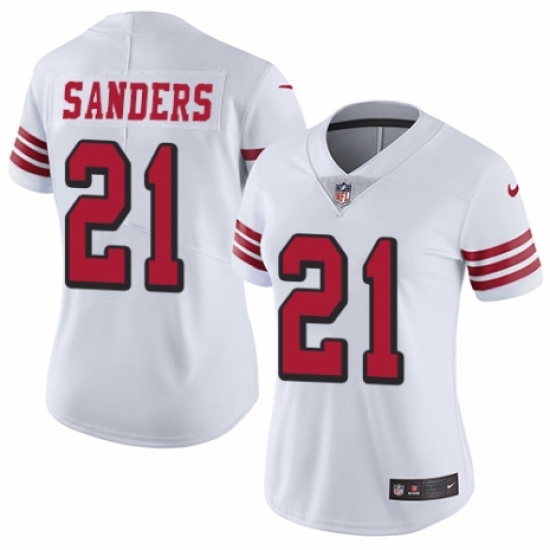>Women's Nike San Francisco 49ers #21 Deion Sanders Limited White Rush Vapor Untouchable NFL Jersey