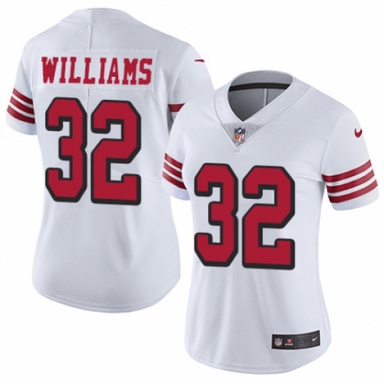 >Women's Nike San Francisco 49ers #32 Joe Williams Limited White Rush Vapor Untouchable NFL Jersey