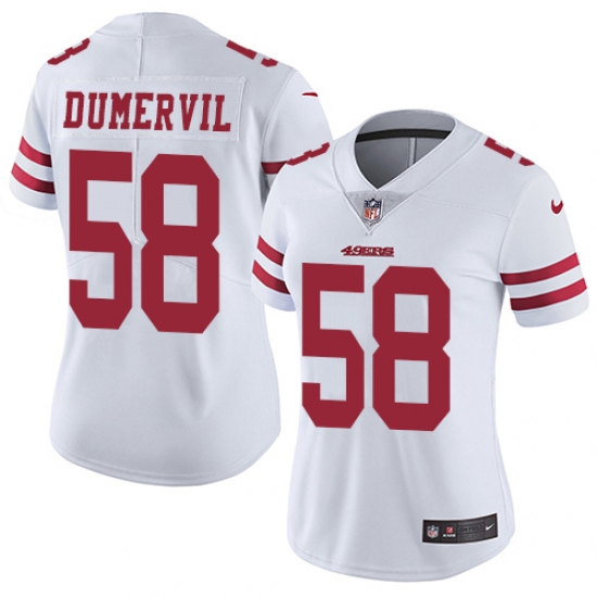 Women's Nike San Francisco 49ers #58 Elvis Dumervil White Vapor Untouchable Limited Player NFL Jersey