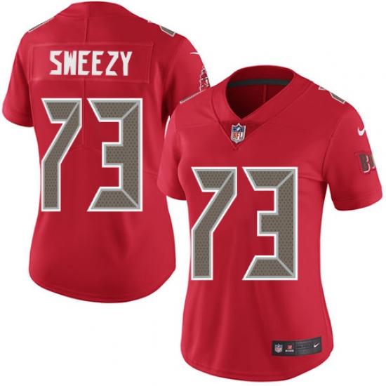 Home>NFL>Tampa Bay Buccaneers>J. R. Sweezy>Women's Nike Tampa Bay Buccaneers #73 J. R. Sweezy Limited Red Rush Vapor Untouchable NFL Jersey