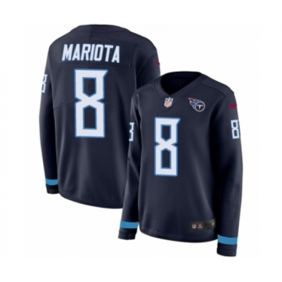 Women's Nike Tennessee Titans #8 Marcus Mariota Limited Navy Blue Therma Long Sleeve NFL Jersey