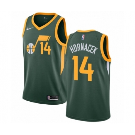>Women's Nike Utah Jazz #14 Jeff Hornacek Green Swingman Jersey - Earned Edition
