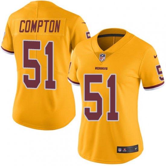 Home>NFL>Washington Redskins>Will Compton>Women's Nike Washington Redskins #51 Will Compton Limited Gold Rush Vapor Untouchable NFL Jersey