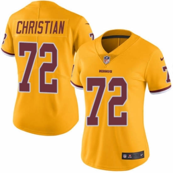 >Women's Nike Washington Redskins #72 Geron Christian Limited Gold Rush Vapor Untouchable NFL Jersey