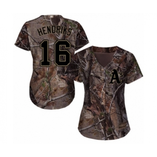 >Women's Oakland Athletics #16 Liam Hendriks Authentic Camo Realtree Collection Flex Base Baseball Jersey