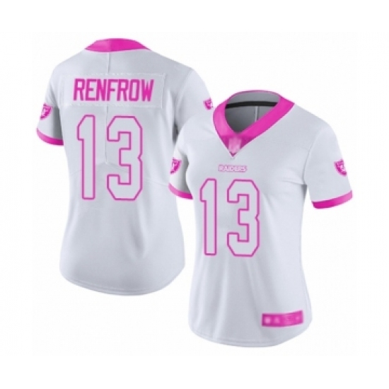 >Women's Oakland Raiders #13 Hunter Renfrow Limited White Pink Rush Fashion Football Jersey