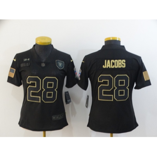 >Women's Oakland Raiders #28 Josh Jacobs Black Nike 2020 Salute To Service Limited Jersey