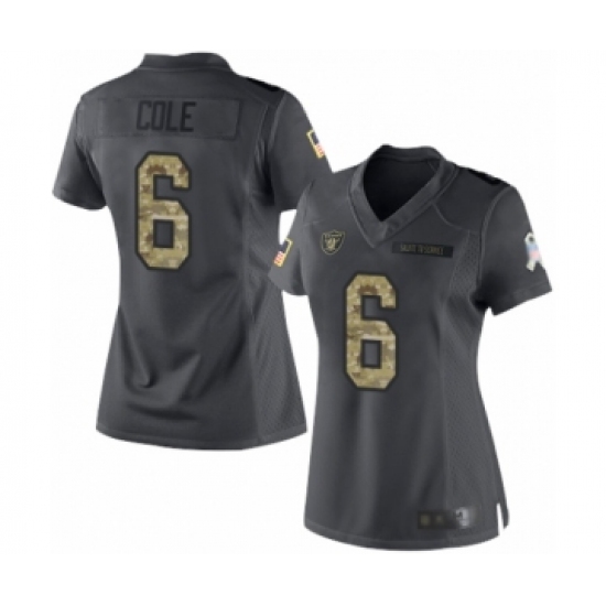 >Women's Oakland Raiders #6 A.J. Cole Limited Black 2016 Salute to Service Football Jersey