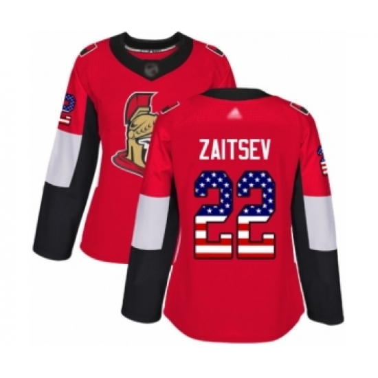 Women's Ottawa Senators #22 Nikita Zaitsev Authentic Red USA Flag Fashion Hockey Jersey