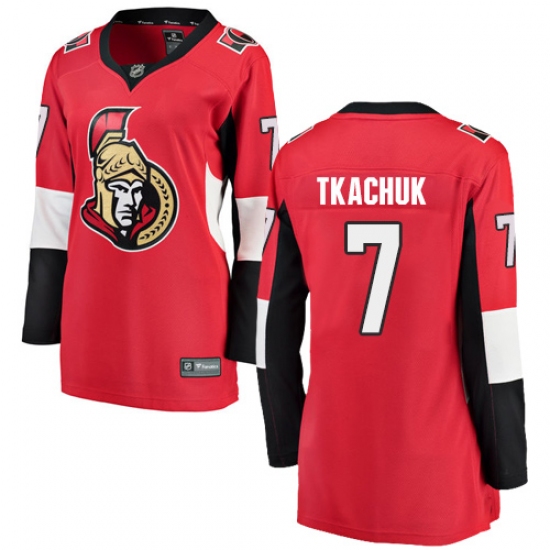 >Women's Ottawa Senators #7 Brady Tkachuk Fanatics Branded Red Home Breakaway NHL Jersey