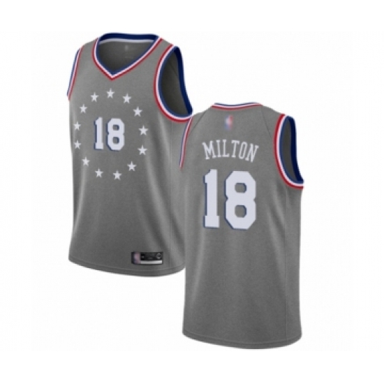 >Women's Philadelphia 76ers #18 Shake Milton Swingman Gray Basketball Jersey - City Edition