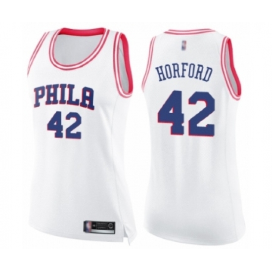 >Women's Philadelphia 76ers #42 Al Horford Swingman White Pink Fashion Basketball Jersey