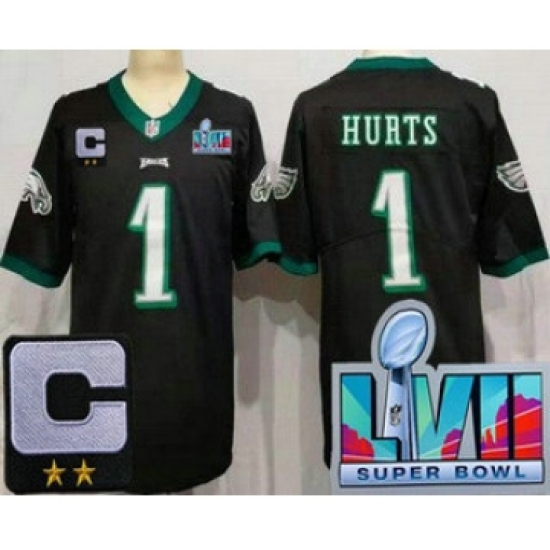 Women's Philadelphia Eagles #1 Jalen Hurts Limited Black C Patch Super Bowl LVII Vapor Jersey