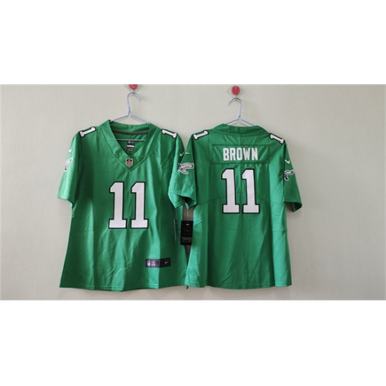 >Women's Philadelphia Eagles #11 A. J. Brown Kelly Green Vapor Stitched Jersey(Run Small)