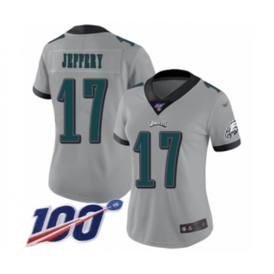 Women's Philadelphia Eagles #17 Alshon Jeffery Limited Silver Inverted Legend 100th Season Football Jersey