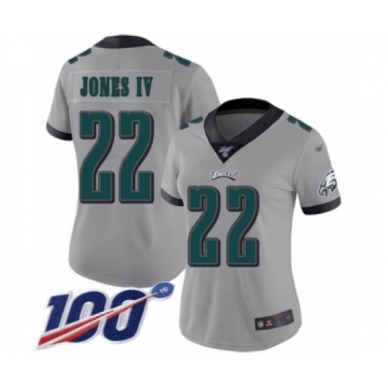 >Women's Philadelphia Eagles #22 Sidney Jones Limited Silver Inverted Legend 100th Season Football Jersey