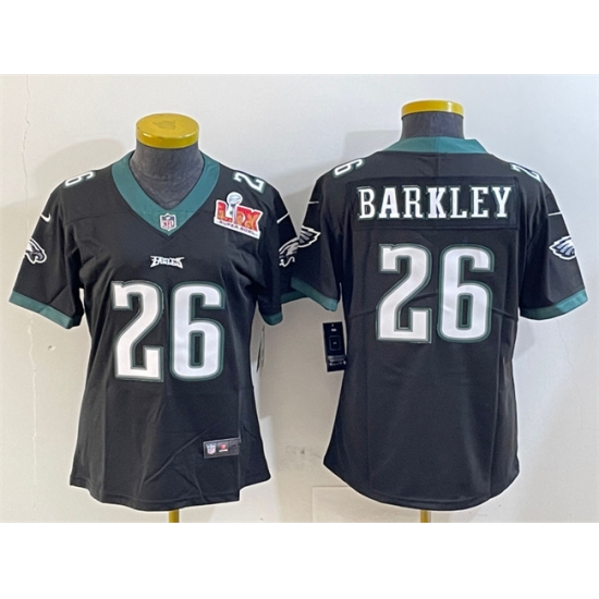 >Women's Philadelphia Eagles #26 Saquon Barkley Black 2025 Super Bowl LIX Vapor Untouchable Limited Football Stitched Jersey(Run Small)