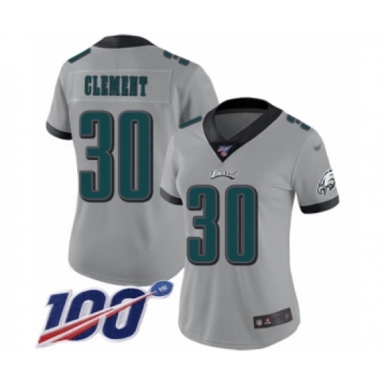 >Women's Philadelphia Eagles #30 Corey Clement Limited Silver Inverted Legend 100th Season Football Jersey