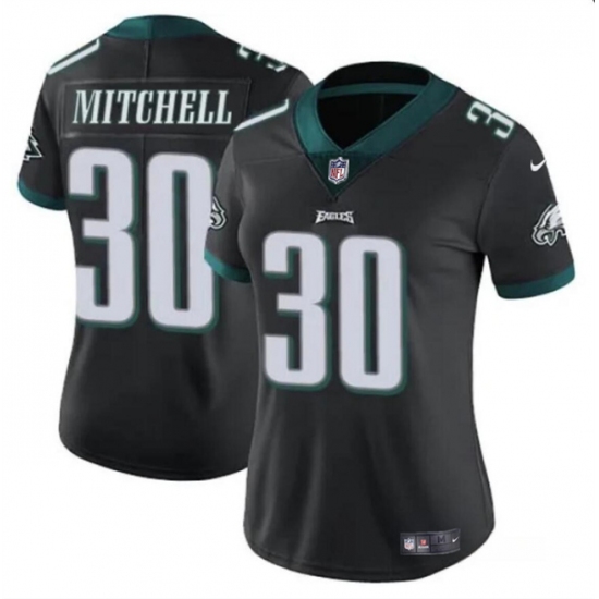 >Women's Philadelphia Eagles #30 Quinyon Mitchell Black 2024 Draft Vapor Untouchable Limited Football Stitched Jersey(Run Small)