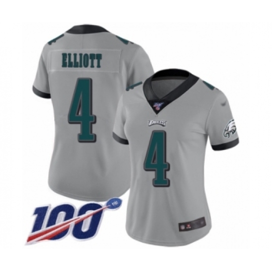 >Women's Philadelphia Eagles #4 Jake Elliott Limited Silver Inverted Legend 100th Season Football Jersey