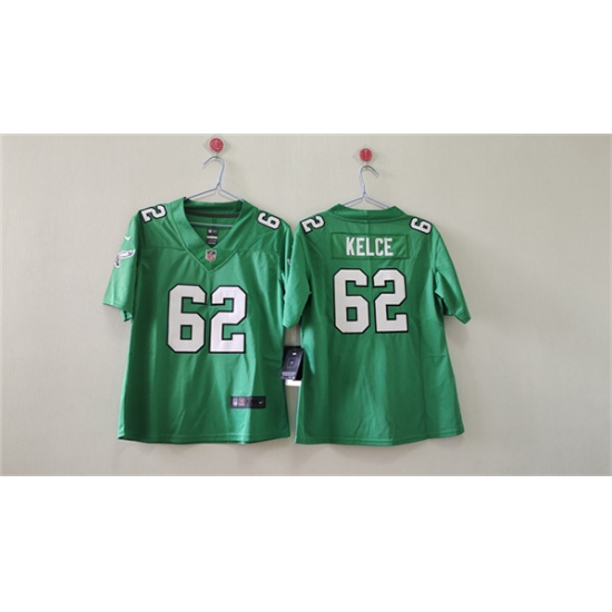 Women's Philadelphia Eagles #62 Jason Kelce Kelly Green Vapor Stitched Jersey(Run Small)
