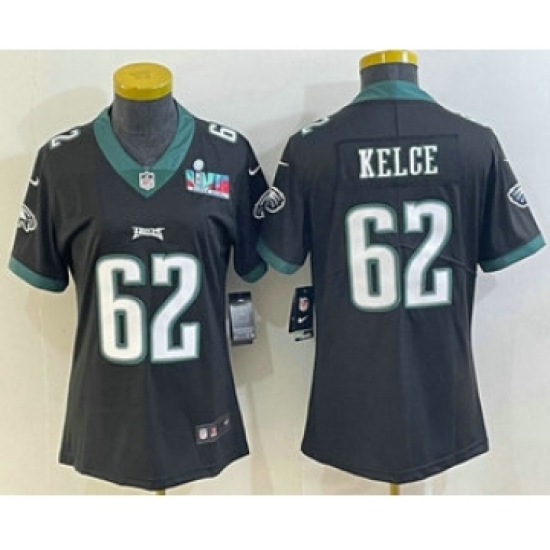 >Women's Philadelphia Eagles #62 Jason Kelce Limited Black Super Bowl LVII Vapor Jersey