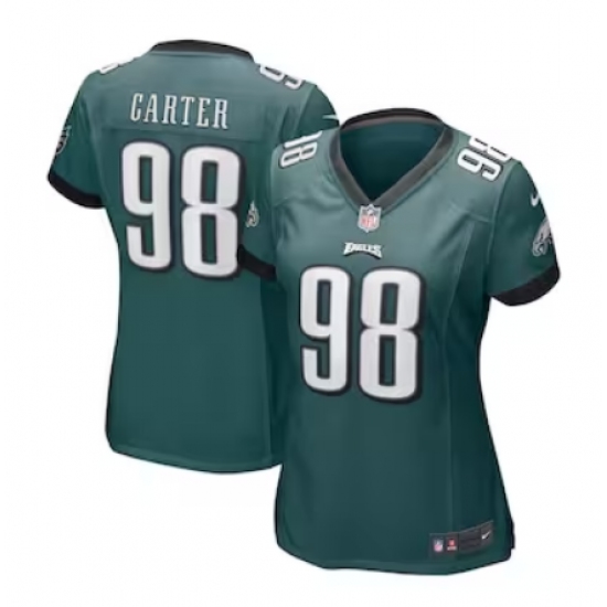 Women's Philadelphia Eagles #98 Jalen Carter Nike Midnight Green 2023 NFL Draft First Round Pick Limited Jersey