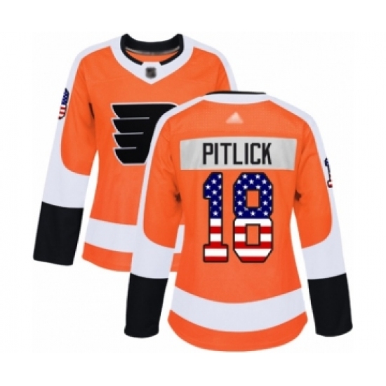 Women's Philadelphia Flyers #18 Tyler Pitlick Authentic Orange USA Flag Fashion Hockey Jersey