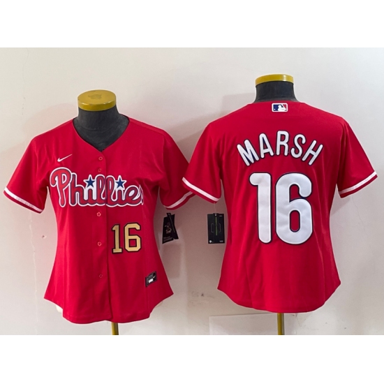 Women's Philadelphia Phillies #16 Brandon Marsh Red Stitched Cool Base Jerseys