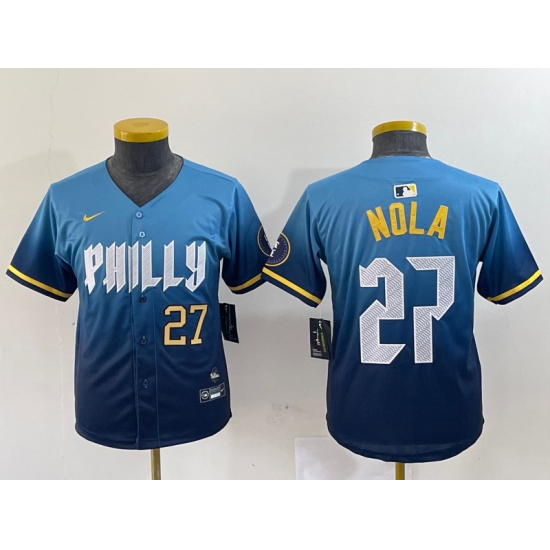 Women's Philadelphia Phillies #27 Aaron Nola Blue 2024 City Connect Limited Stitched Jerseys