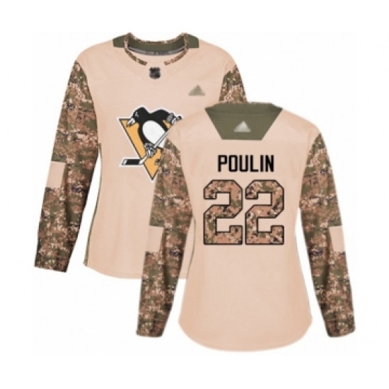 >Women's Pittsburgh Penguins #22 Samuel Poulin Authentic Camo Veterans Day Practice Hockey Jersey