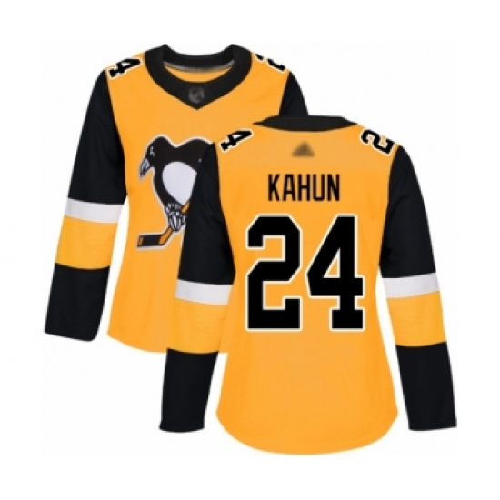 >Women's Pittsburgh Penguins #24 Dominik Kahun Authentic Gold Alternate Hockey Jersey