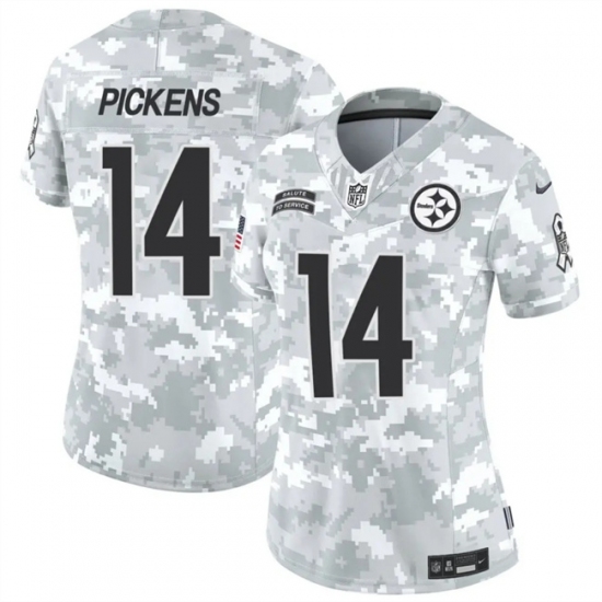 Women's Pittsburgh Steelers #14 George Pickens 2024 F.U.S.E Arctic Camo Salute To Service Limited Stitched Football Jersey(Run Small)