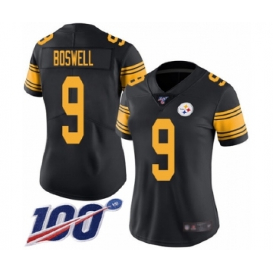 >Women's Pittsburgh Steelers #9 Chris Boswell Limited Black Rush Vapor Untouchable 100th Season Football Jersey