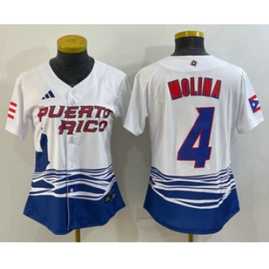 Women's Puerto Rico Baseball #4 Yadier Molina 2023 Red World Classic Stitched Jerseys