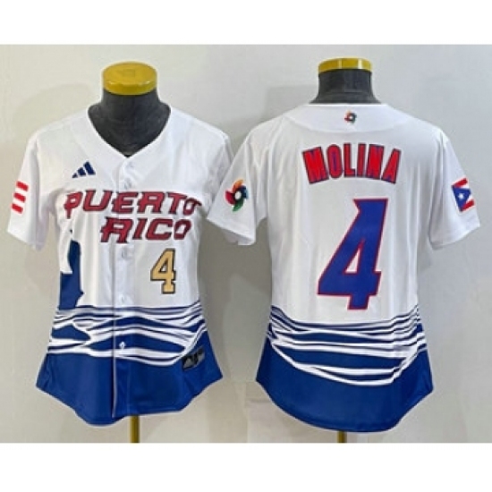 Womens Puerto Rico Baseball #4 Yadier Molina Number 2023 Red World Classic Stitched Jersey