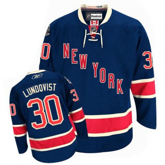 Women's Reebok New York Rangers #30 Henrik Lundqvist Authentic Navy Blue Third NHL Jersey