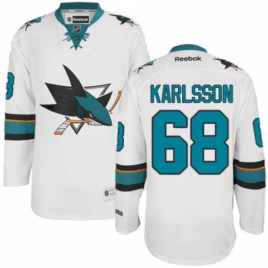 Women's Reebok San Jose Sharks #68 Melker Karlsson Authentic White Away NHL Jersey