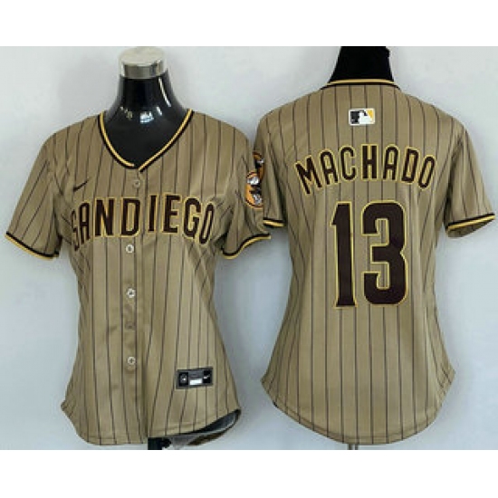 >Women's San Diego Padres #13 Manny Machado Khaki Limited Cool Base Jersey