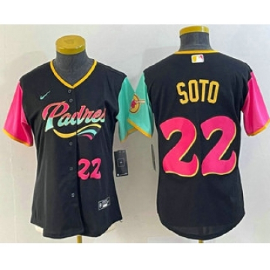Women's San Diego Padres #22 Juan Soto Number Black 2022 City Connect Cool Base Stitched Jersey