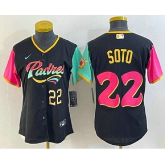 >Women's San Diego Padres #22 Juan Soto Number Black 2022 City Connect Cool Base Stitched Jersey1