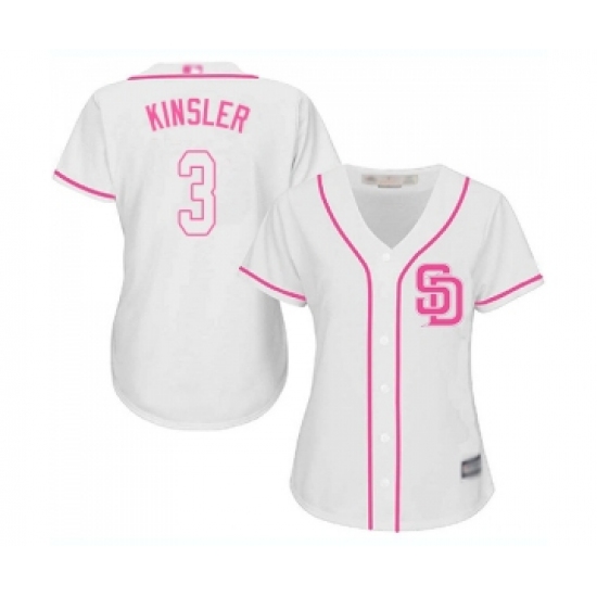 Women's San Diego Padres #3 Ian Kinsler Replica White Fashion Cool Base Baseball Jersey