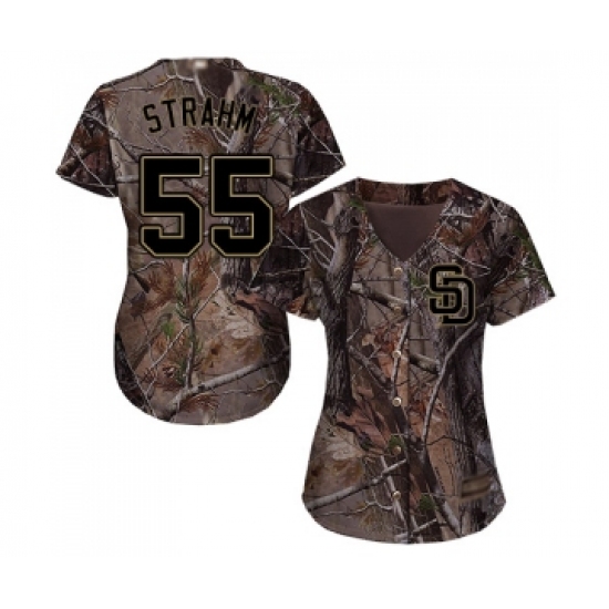 Women's San Diego Padres #55 Matt Strahm Authentic Camo Realtree Collection Flex Base Baseball Jersey